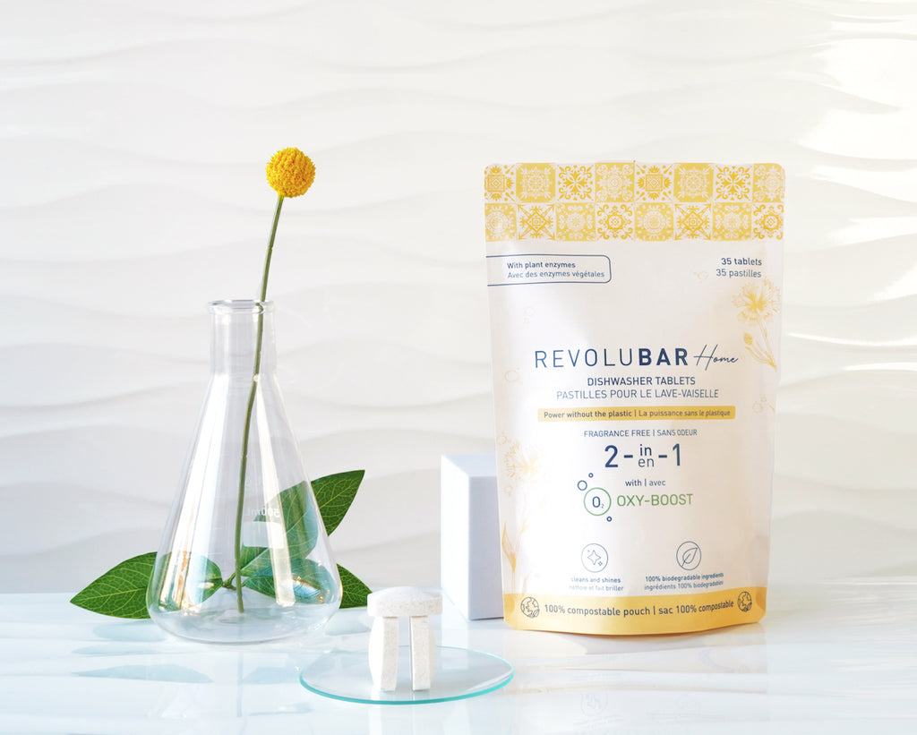 35 pastilles pour lave-vaisselle sans parfum dans un sac 100% compostable