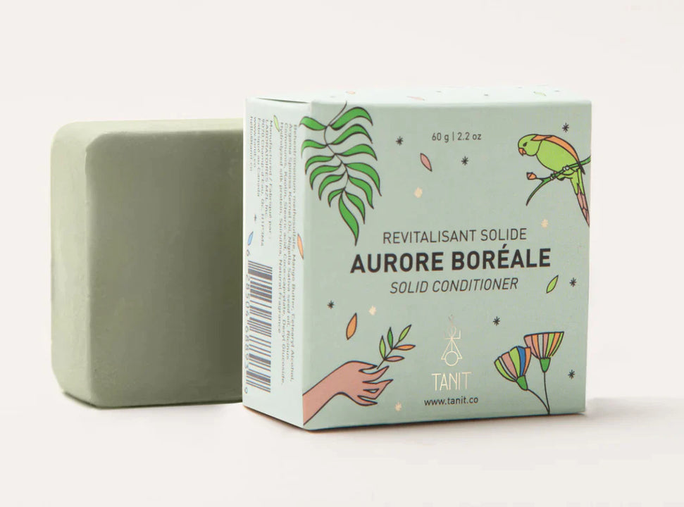 AURORE BORÉALE: Behentrimonium methosulfate*, Beurre de mangue, Huile de graines de Nigella sativa, Huile de noyau d'Argania spinosa, Kaolin, Acide stéarique, Coco-caprylate, Decyl glucoside, Extrait de Spriulina platensis, Parfum naturel