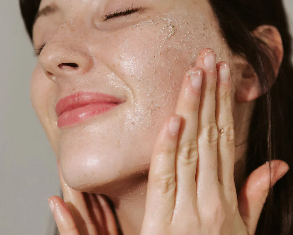 L'agent exfoliant est la poudre extraite des graines de figues de Barbarie biologiques, qui sont super minuscules et douces pour la peau (pensez à un nettoyant avec des microbilles si vous le comparez à un nettoyant conventionnel). Nous avons également ajouté des extraits de plantes apaisantes pour la peau.